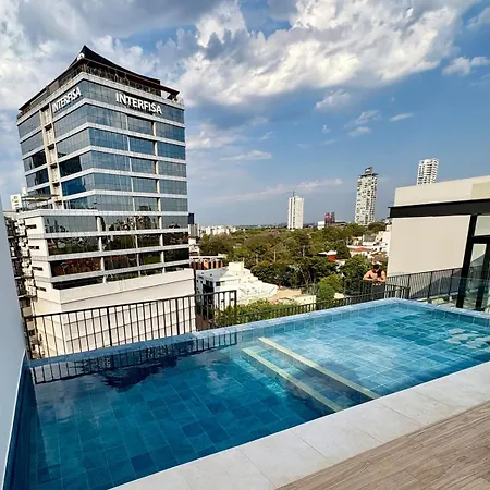First Del Sol 504 Vivelite Apartment Asuncion is located approximately 20 minutes' walk from the Health Park and offers a rooftop pool along with a pool fence. The apartment is also 300 m from centro parroquial san juan bautista and within reach of the Slots del Sol.